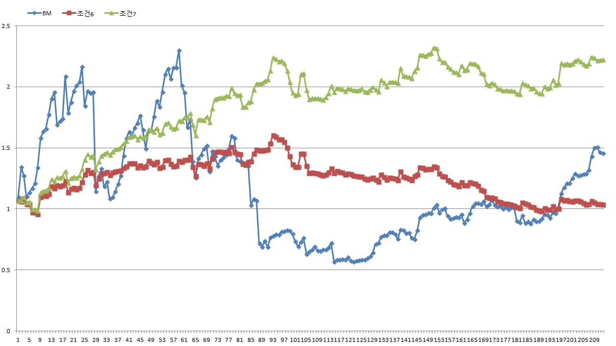 | 구분 | BM | 조건1 | 조건2 | 조건3 | 조건4 | 조건5 | 조건6 | 조건7 |