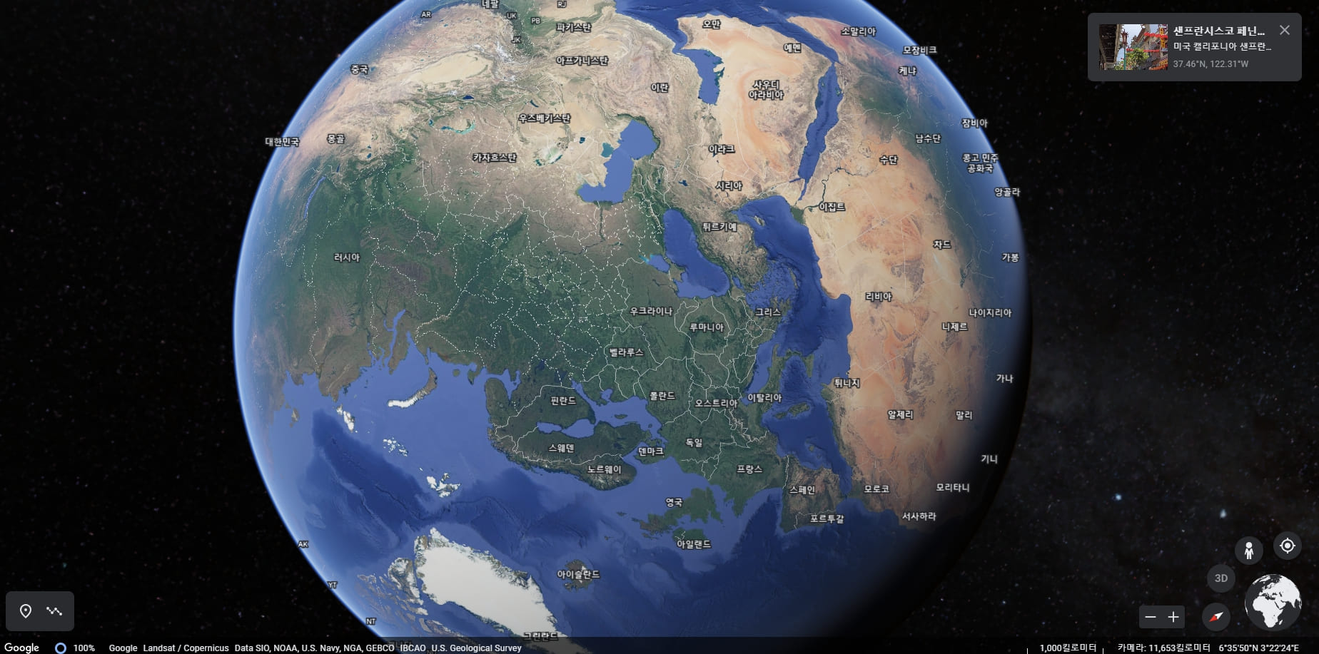 만약 세계지도를 지구본 형태로 크게보기가 필요한 경우라면 구글에서 제공하는 서비스를 이용하시는 것도 좋습니다. 아래 사이트를 참고해주세요.
