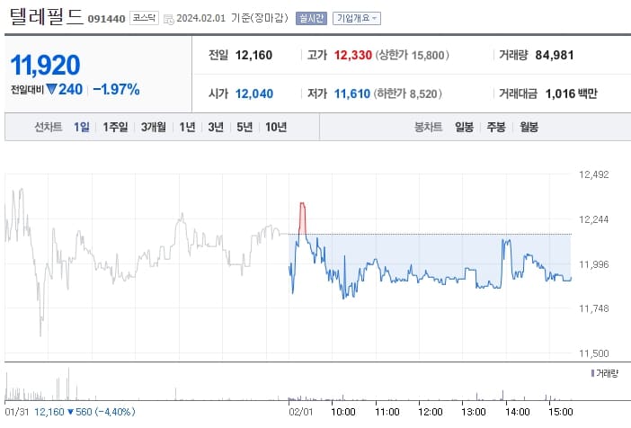 양자컴퓨터 관련주 : 텔레필드(091440)