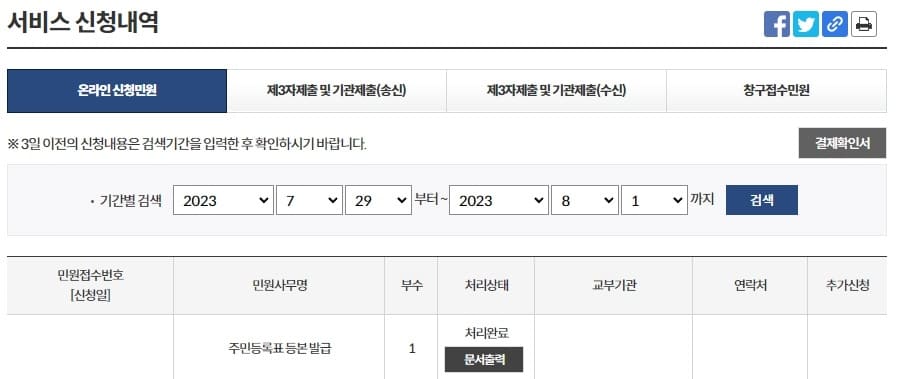 STEP6. 서비스 신청내역 ▶ 문서출력
