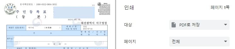 주민등록등본 인터넷발급 pdf 저장방법 : 초본,영문 1분 완료